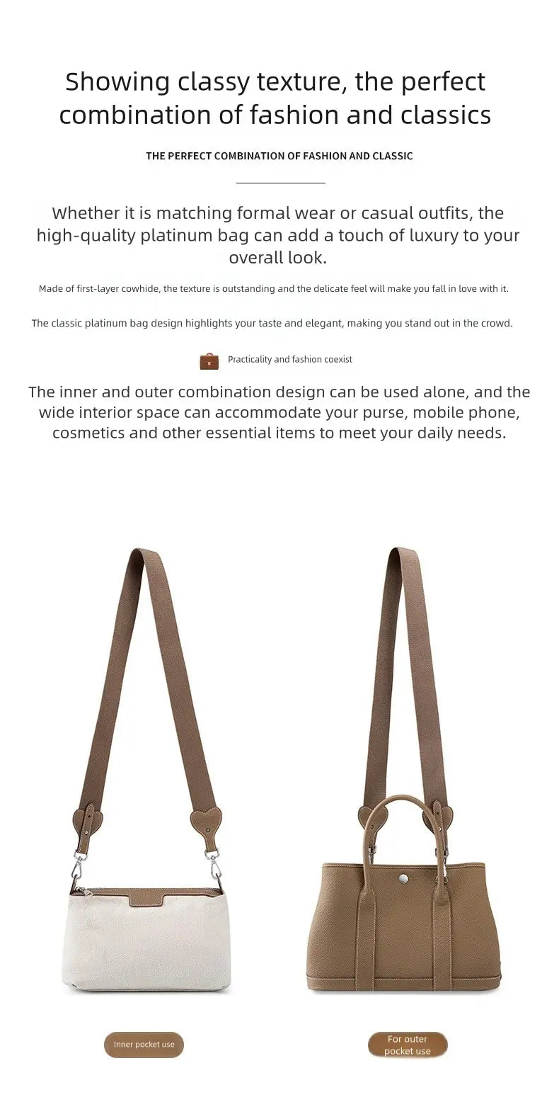 The material selection of this garden bag is very demanding. The fabric must be plain cowhide, which looks clean and neat. It is wear-resistant and has a long service life. The stitching is very tight and the spacing is well controlled. It will not fall off easily. This bag is available in large and small sizes and in various colors. Each has its own taste. The upper body is also very elegant and very versatile.